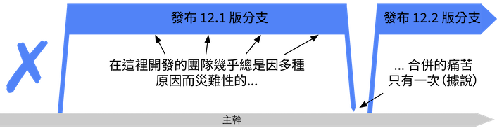 在任何發布節奏下,從主幹上建立出共享分支都是不好的:#